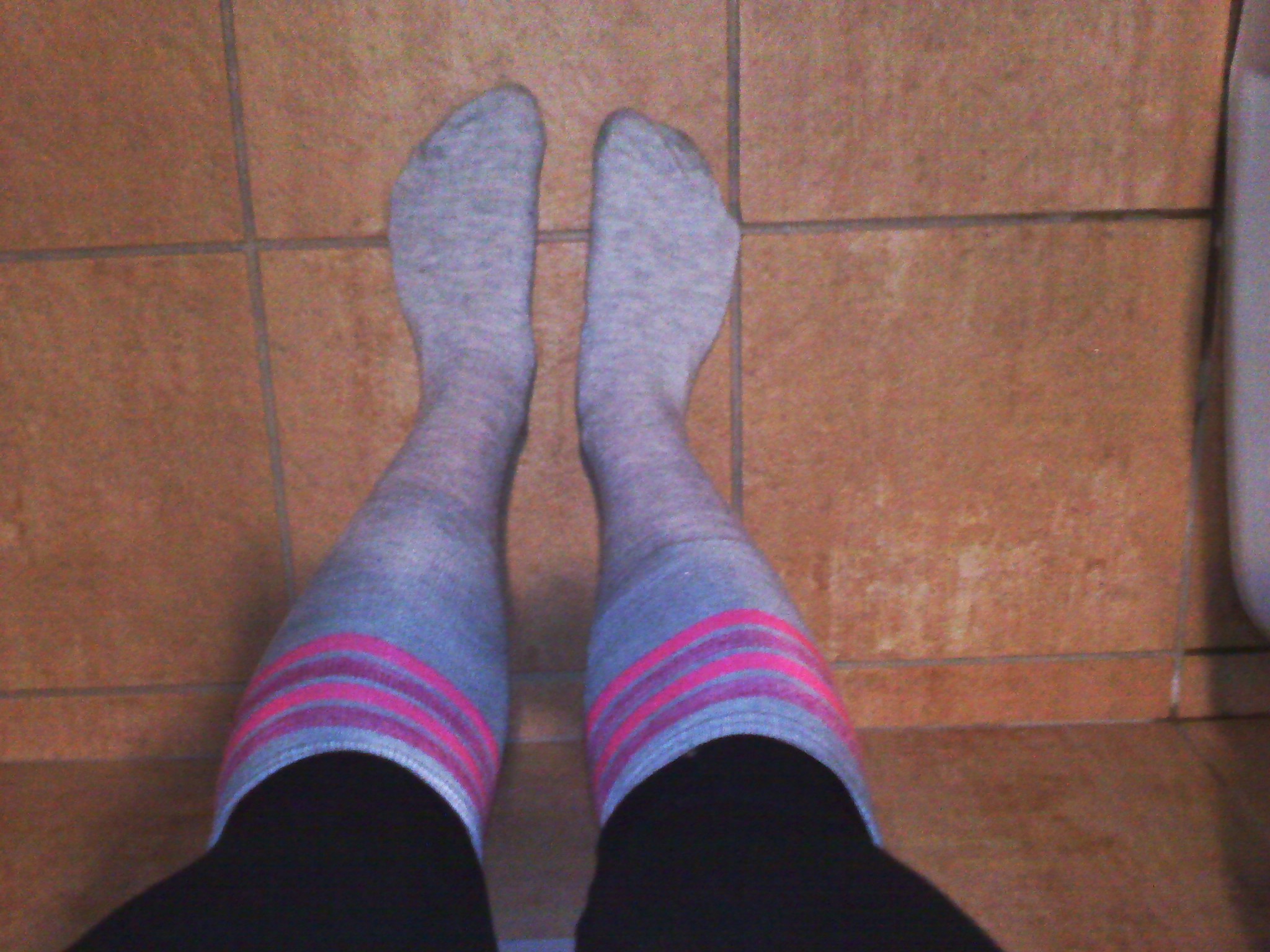 These are Brooks Pure Connect, which are—according to them—a good middle ground between really structured shoes and minimalist shoes. And that’s pretty much exactly what they are—there’s a good amount of cushion to support the arch of the foot, but they are really light and the toe is split a bit.